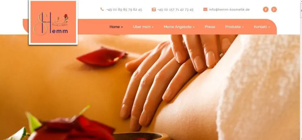 Hemm Kosmetik ist ein Kosmetikstudio in München, Aubing und Schwabing. Die Geschäftsführerin Simone Hemm ist ausgebildete Kosmetikerin und Masseurin. In Ihrem Kosmetikstudio werden folgende Leistungen angeboten: kosmetische Fachfußpflege, Massageanwendungen, Gesichtsbehandlungen, Maniküren, Pediküren und der direkte Verkauf von Naturkosmetik.